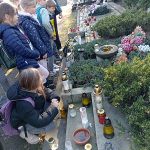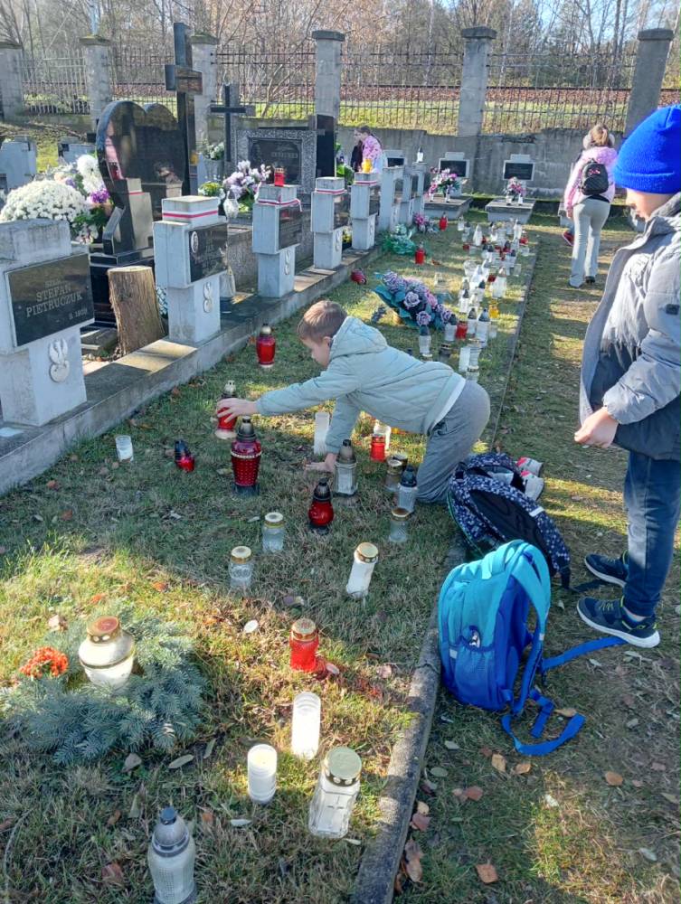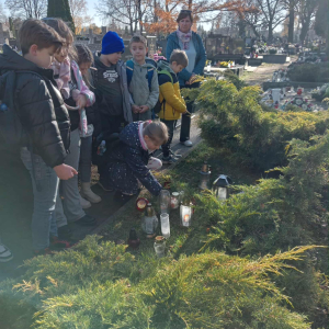 6 listopada 2025 r. uczniowie klasy trzeciej z okazji zbliżającego się Narodowego Święta Niepodległości odwiedzili groby żołnierskie na cmentarzu św. Józefa w Skierniewicach. Zapalili znicze i w ciszy oddali hołd poległym żołnierzom. Wycieczka była piękną lekcją historii, patriotyzmu i wdzięczności wobec tych, którzy walczyli o wolną Polskę.